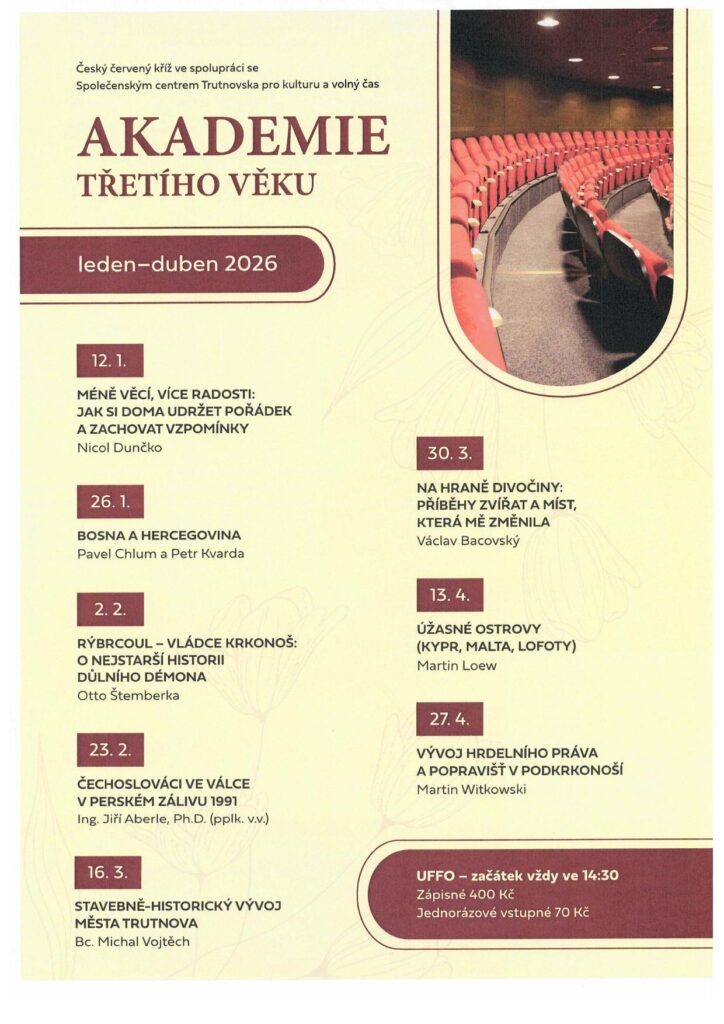Přihlásit se můžete na tel. č. 499 810 810 , 775 220 000             nebo emailem ccktu@tiscali.cz do 25.4.2025